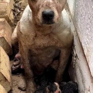 Dog Found Waiting In The Mud Reveals Heartbreaking Surprise At Her Feet