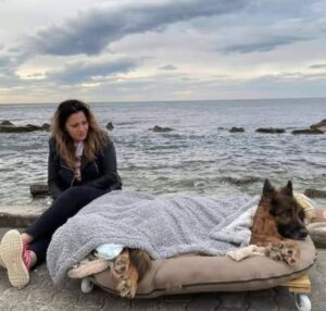 Max, a thirteen-year-old dog, moves slower now, his once-energetic legs weakened by time and his youthful spark softened by age. Yet, his devoted owner ensures his days remain filled with love, wrapping him in cozy blankets and gently placing him in a wheeled bed for their cherished morning trips to the beach.