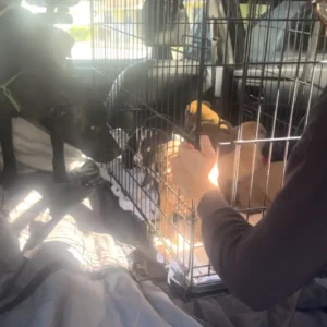 Meta Description: A sick puppy named Panda was found hiding under a car in Los Angeles, battling parvovirus and on the brink of death. Thanks to Logan’s Legacy…