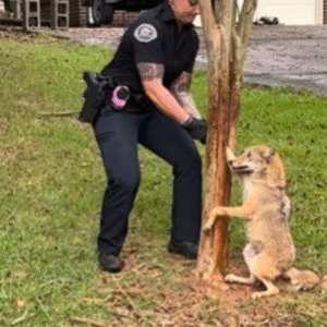 Coyote Rescued From Tree Learns What Kindness Means