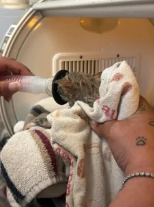 Despite her wounds, Penelope never stopped showing love. Even while wrapped in bandages, she purred softly in the arms of her caregivers, clinging to comfort and trust. The BAHS team cleaned her gently, gave her pain medication, and applied eye treatments every few hours. It was exhausting work, but Penelope’s sweet spirit inspired everyone around her.