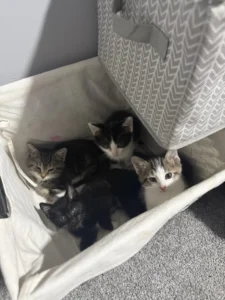 While the kittens flourished, Joanie’s transition to indoor life has been slower. After years of living outdoors, she remains cautious but curious. Jane and her husband are committed to helping her adjust, with the hope of adopting her permanently. If Joanie decides not to stay indoors, she will be spayed and returned to a safe outdoor environment once her kittens are grown—a responsible and compassionate solution for a formerly feral cat.