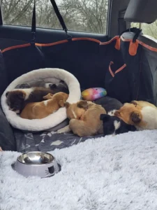 “We found him eating a slice of pizza in the middle of a busy road, with cars rushing by just inches away,” a representative from Hounds In Pounds recalled. “It was a miracle he wasn’t hurt.”