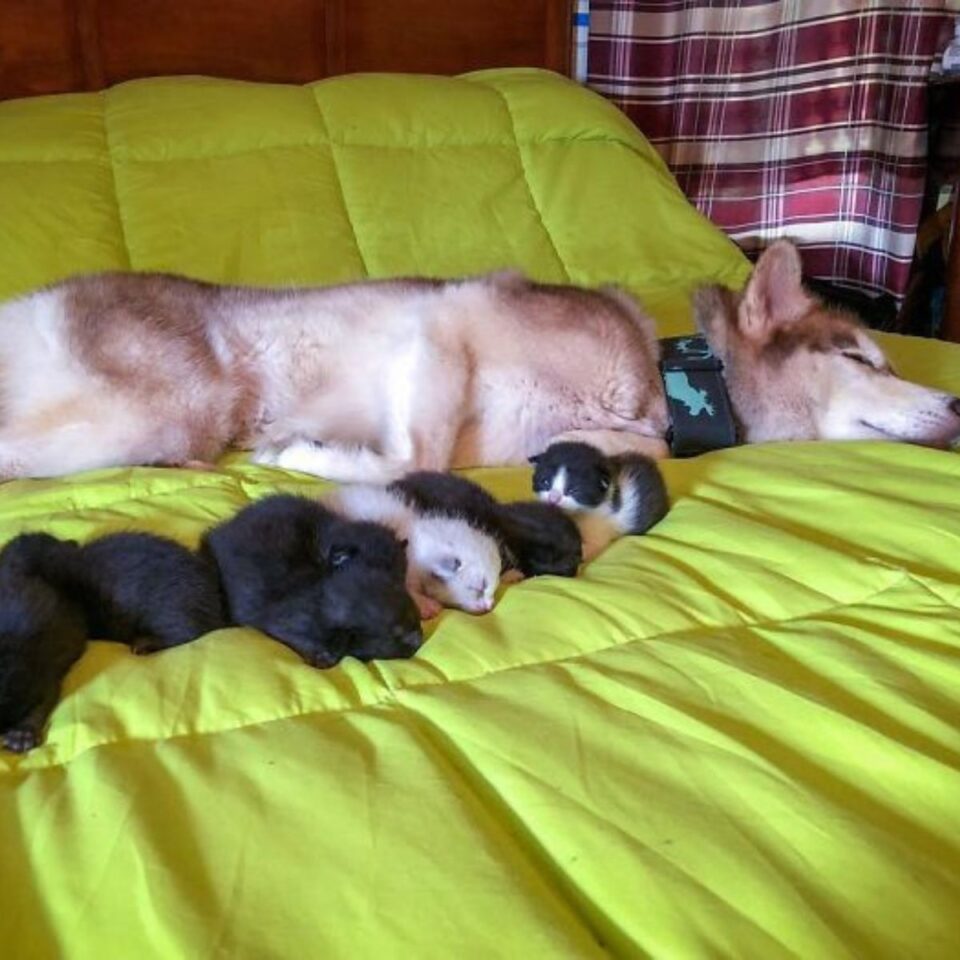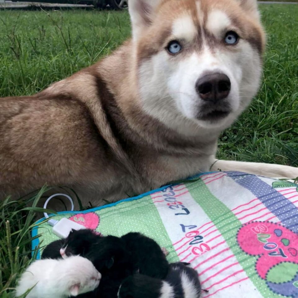 Husky Rescues 7 Kittens in the Woods and Melts Hearts
