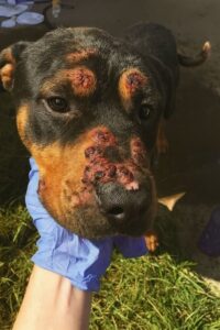 Every dog deserves a chance to shine, no matter how rough their past. Meet a dog whose story redefines beauty—a survivor whose scars tell a tale of resilience and hope. When rescuers first found him, his appearance was far from the polished pups in adoption ads. Open wounds marred his face, his fur was patchy, and his eyes reflected deep pain. Most people would’ve walked away, seeing only a “broken” dog. But he was anything but broken—he was a fighter.