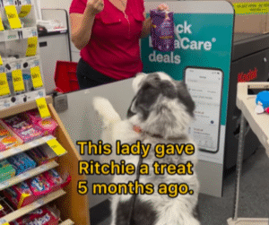 It all began almost by accident. One evening, Apollo’s mom stopped at the store to grab medicine. The errand was routine, but for Apollo, it became unforgettable. A cashier leaned over the counter, tore open a bag, and slipped him a crunchy biscuit. His tail wagged so hard the whole line laughed.