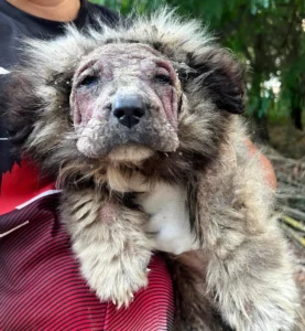 When Romanian rescuer Georgiana Neagu first saw the small, fragile puppy in August, her heart broke. The dog, later named Nala, had the kind of eyes that seemed to carry the weight of a thousand unspoken pleas. Though technically “owned,” she lived in conditions that could barely be called a home. Her frail body was crawling with flies, her skin ravaged by disease until no fur remained. In that moment, she was more shadow than dog, yet she lifted her head to Neagu — silently begging for a second chance.