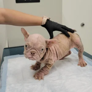 When rescuers first laid eyes on Harold, they froze. Tiny, trembling, and wrapped in fragile pink skin, he looked less like a dog and more like a fragile newborn. But Harold was not a baby — he was a puppy who had already endured unthinkable hardship.