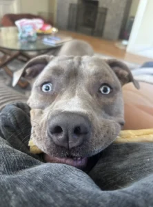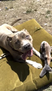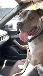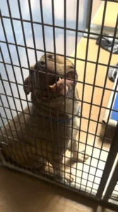 That’s when Lena got the call. Her neighbor, knowing she often rescued pit bulls, had stumbled upon the scene and didn’t know what to do. Within minutes, Lena was there, her heart racing as she spotted the gray pit bull sitting silently by the fence.