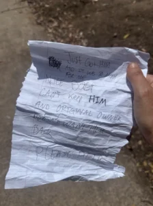 His name wasn’t known yet. All he had was a frayed rope around his neck, a pair of soulful eyes, and a crumpled note.