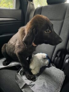 The rescuer, moved by her plight, gently lifted Luna into their arms, wrapping her in a car blanket for comfort. Her initial wariness melted as a soft toy was placed beside her, which she claimed with instinctive trust during the ride home.